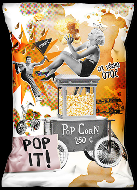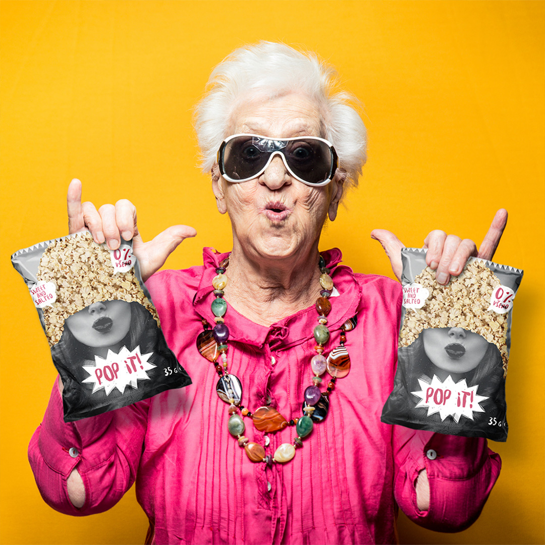 We really wanted the packaging (and overall brand) to scream FUN and good times. we went with a modern and unique style that truly speaks to those looking for a quick, pop snack.